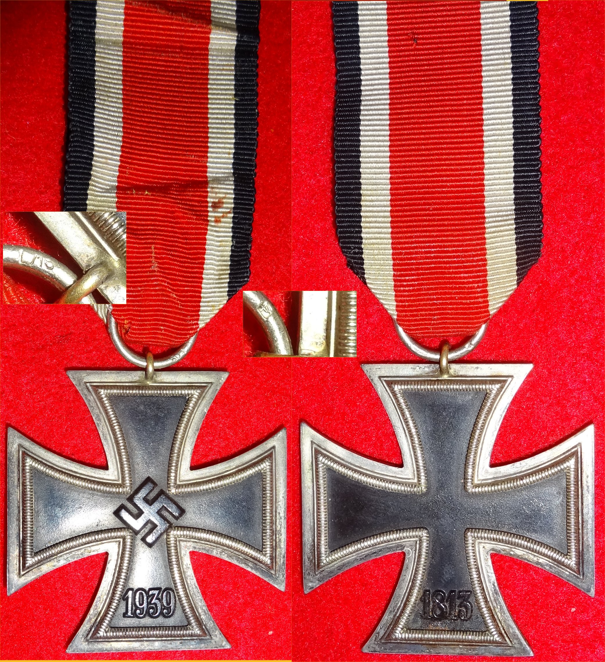 Iron Cross 2nd Class on a traditional ribbon. Unmarked cross (3-piece magnetic) but is 'L/15' - Otto Schickle, Pforzheim