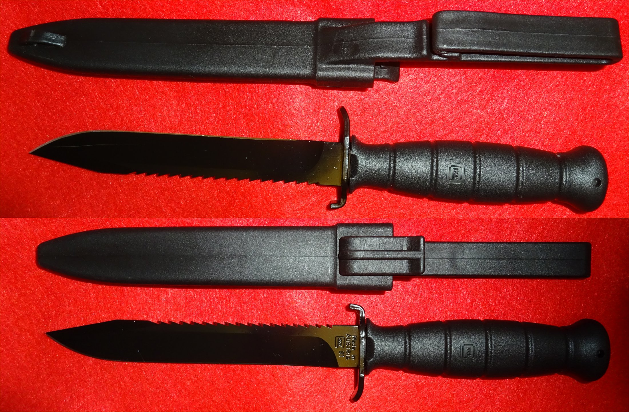 The Glock FM81 has a Polymer grip and sheath, with a 6.5" Spring steel HRC ~ 55, electrophoretic coated blade with Saw.